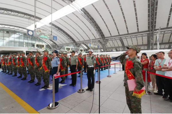 今年秋季征兵工作开展以来,学校人武部严格政治考核,严肃征兵纪律,广泛动员适龄学生踊跃报名参军,最终我校确定入伍新兵21名。9月16日,湖北省2023年下半年新兵出征仪式在汉口火车站举行,首批一百余名新兵带着满腔的热血,踏上军旅新征程。省委常委、省军区司令员、省征兵领导小组常务副组长周月星,副省长、省征兵领导小组副组长吴海涛到车站送行。出征仪式上,我校新兵杨军代表全省新兵发言,表示要自觉把“我的梦”融入“强国梦”“强军梦”,继承和发扬我军的光荣传统,敢于同一切困难作斗争,在艰苦的环境中摔打磨练,锤炼意志品质,尽快实现由社会青年向合格军人的转变。要坚决做忠于党、忠于人民、忠于军队的好战士,用自己的良好表现和优异成绩为“湖北兵”品牌增光添彩。