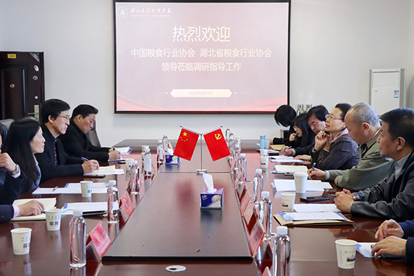 3月24日上午,中国粮食行业协会副会长衡虹、湖北省粮食行业协会秘书长陈三才一行8人莅临我校调研指导工作。院长高连顺热情接待了衡虹一行。副院长钟春敏,党委委员、党委与行政办公室主任刘张虎和教务处、粮食与食品工程学院及相关部门负责人参加调研座谈。