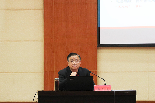 为深入学习贯彻党的二十大精神,3月29日下午,湖北大学党委常委章天金莅临学院,为师生党员作党的二十大精神学习辅导报告。党委书记彭德忠主持学习报告会。全体院领导、中层干部、教职工党员和学生党员代表参加学习。