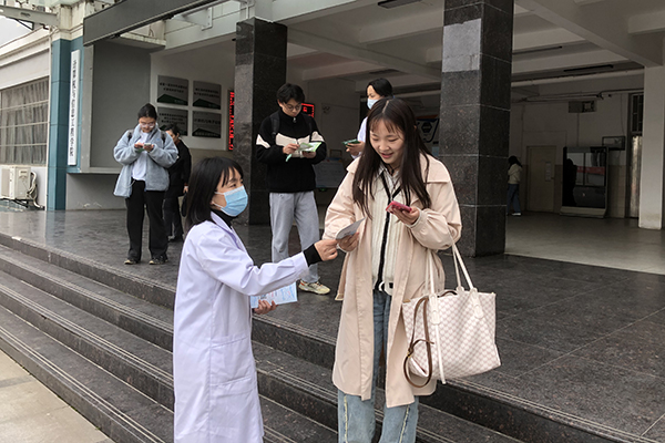 3月18日,艺术与设计学院组织志愿者在武汉循礼门开展无偿献血活动宣传活动。同学们根据要求分布在各工作岗位,协助献血工作人员确保了献血工作的顺利开展,引导每位前来献血的市民了解无偿献血的相关知识。