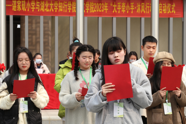 3月1日中午,人文学院联合谌家矶小学开展的“大手牵小手 沐风行动”活动启动仪式举行。仪式后,志愿者们结合自身特长,通过多种形式让小学生在愉悦的氛围中学习课外知识,培养课余兴趣爱好,以实际行动践行“大手牵小手”。