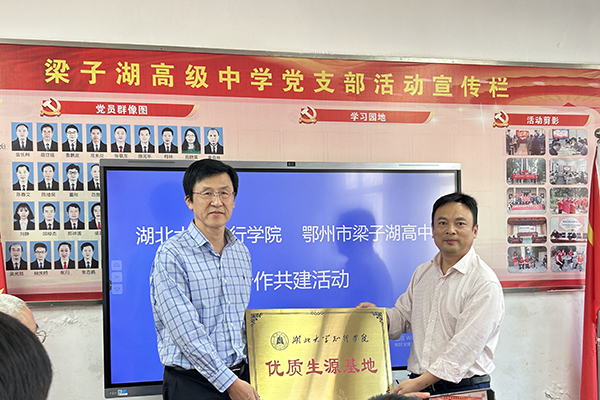 调研期间,双方举行了“优质生源基地”授牌仪式。仪式上,梁子湖区副区长甘珣对高连顺一行表示热烈欢迎,并简要介绍了辖区经济社会发展基本情况,希望双方以此次授牌为契机,促进梁子湖区中等教育和高等教育的有效衔接,共同努力提高人才培养质量。