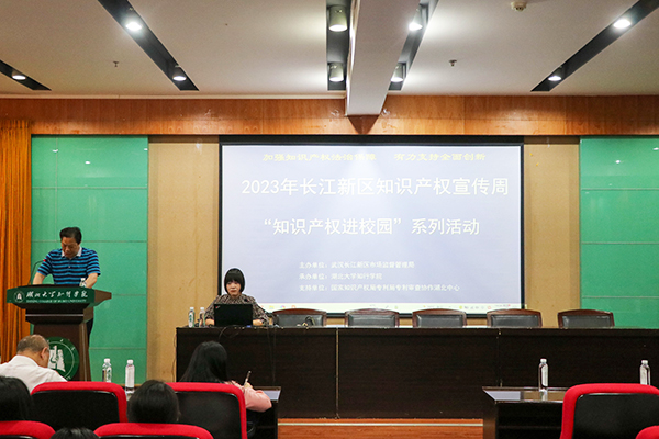在第23个世界知识产权日即将来临之际,4月21日下午,学校联合长江新区市场监管局(知识产权局)开展“知识产权进校园”系列活动。长江新区市场监管局局长臧庆、副局长江少琳,国家知识产权局审协湖北中心副研究员周清霞一行深入学校开展相关宣讲活动。院长高连顺热情接待了臧庆一行。副院长钟春敏出席相关活动,师生代表200余人参加宣讲讲座学习,教务处处长杨登想主持宣讲专题讲座。