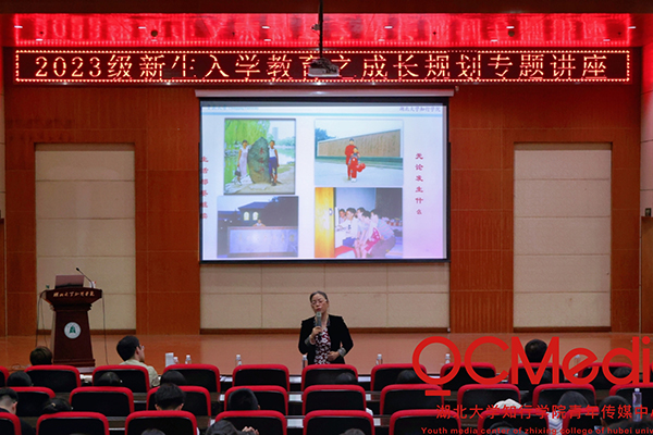在新生入学讲座中,辜教授首先以《在不确定性中做确定的事情一一Life-longLearningand Life-wideLearning之我见》为题,面向2023级新生代表及全校辅导员进行了专题辅导。讲座中,她分享了自己的逐梦之旅和教育人生,以自己的硕博经历、学术故事等多个实例,阐释了学习对人生的重要性,勉励青年学子要在不确定性中做确定的事,学习中要会列计划、强执行、多思考, 用坚持和耐心获得成功。