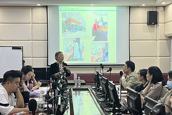 在外国语学院教师专题辅导中,辜教授以“教学、科研、人才培养和社会服务如何一体化 ”为题,结合自己的学习工作经历,为老师们传递了教学、科研、人才培养、家庭生活、子女教育等协调平衡共同发展的理念,鼓励教师们志存高远,坚持不懈,终身学习。互动交流环节中,辜教授对老师们在教学科研过程出现的工作难点进行了详细解答。