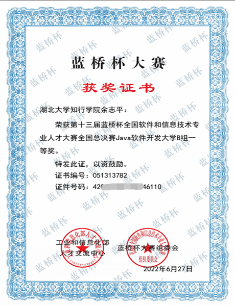 知行学子荣获第十三届“蓝桥杯”大赛全国一等奖