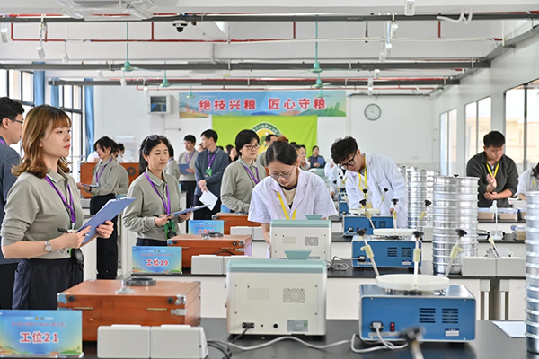 竞赛以“技能成才,为国保粮”为主题,共有全国30个省(区、市)粮食和物资储备局及4家涉粮央企的34支代表队、322名选手参加,参赛选手人数再创新高。共设有(粮油)仓储管理员和农产品食品检验员2个职业,选手们分别进行储粮通风机配置合理性评价与通风条件判断、佩戴正压式空气呼吸器检查气调储粮杀虫效果、计算机粮情检测与分析、感官鉴定及试样称量、稻谷脂肪酸值的测定、粮食验质定等、粮食中真菌毒素的液相色谱法定量分析等7个赛项的实操比拼。赛事启动以来,我校参赛选手在专业老师的悉心指导下,认真进行理论测试和技能操作的培训和演练,不断提高自己的技能水平,最终在决赛中脱颖而出,为湖北省粮食局和学校争得了荣誉。粮食与食品工程学院刘齐、汪浩明两位老师受大赛邀请担任了竞赛裁判工作。