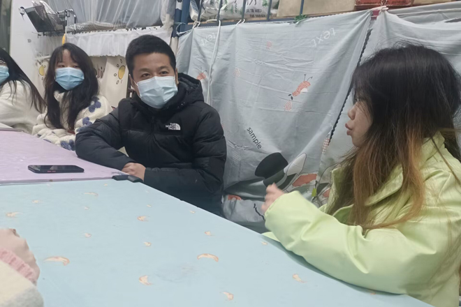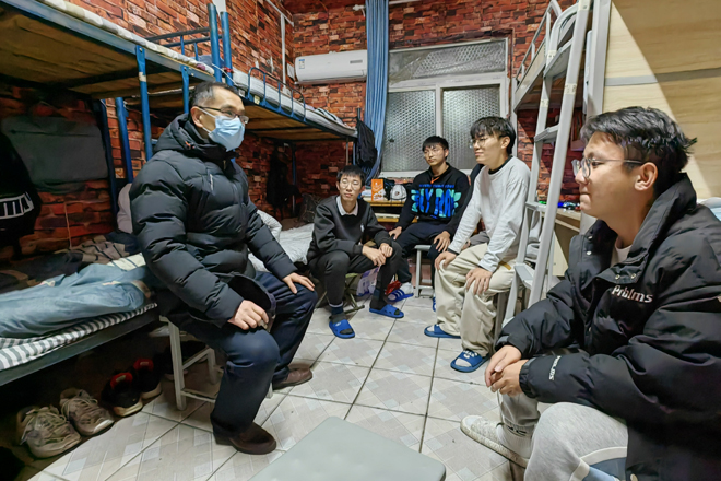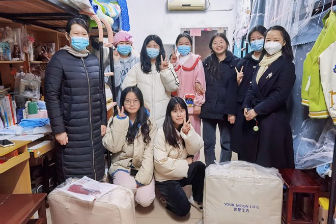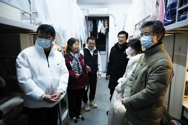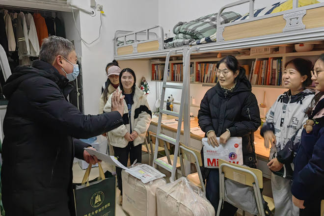 “天气冷了,同学们要注意防寒保暖。”12月1日晚,学校结合“下基层察民情解民忧暖民心”实践活动安排,组织全体院领导、全体中层干部和辅导员,分别深入到各楼栋学生寝室,宣讲党的二十大精神,倾听学生心声,为学生解疑答惑,同时向部分学生送上寒衣棉被等慰问物资,表达学校对学生的关心和关爱。