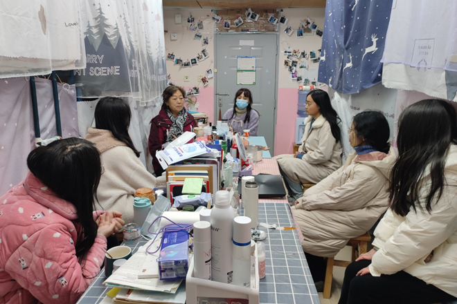 “老家是哪里?”“吃得好不好?”“学习生活中有没有什么困难?”走访活动中,党员干部和辅导员老师们分别深入到各学生公寓寝室,仔细询问同学们的日常学习和生活情况,听取同学们对学校各方面工作的意见和建议,勉励同学们要自强自立,勤奋学习,养成良好的生活学习习惯,营造整洁、和谐、文明、奋进的宿舍文化。一句句暖心的问候,体现了老师们对学生生活学习的关心,不知不觉间拉近了师生间的距离,让学生感受到了家一样的温暖。走访互动中,同学们对学校领导、老师的关心纷纷表达谢意,并表示在未来的学习和生活中将珍惜时光,勤奋向学,努力成就更好的自己。