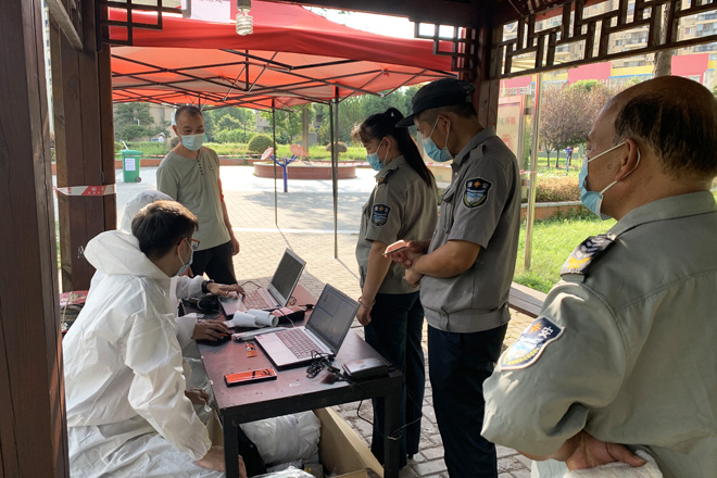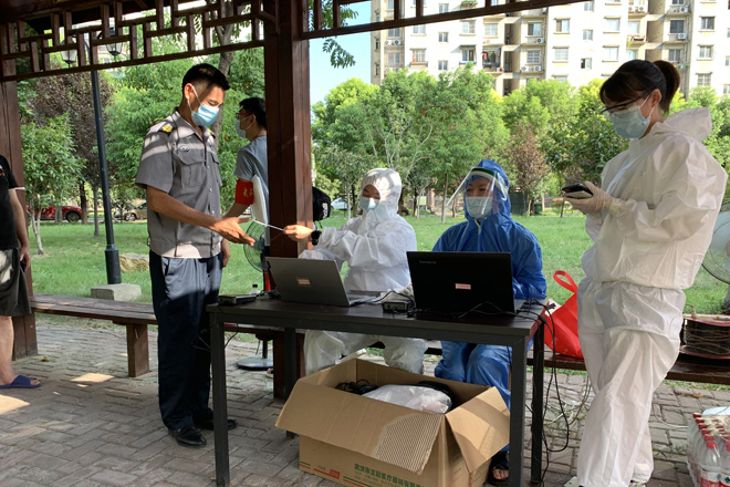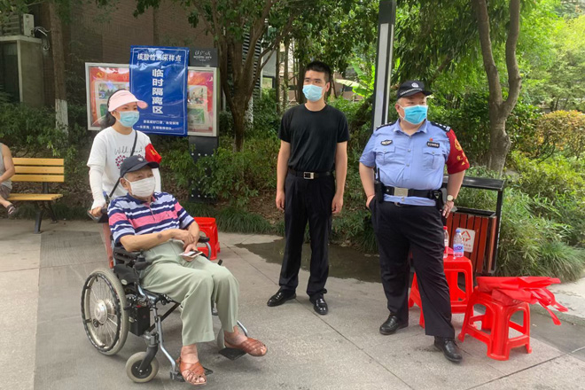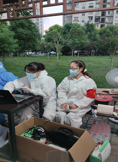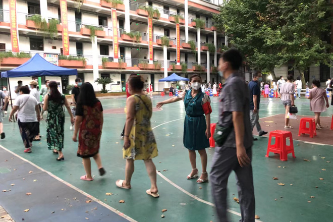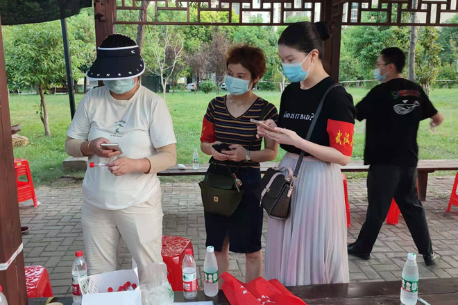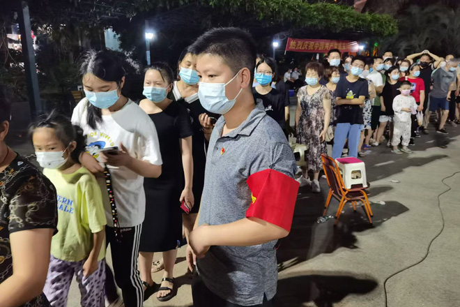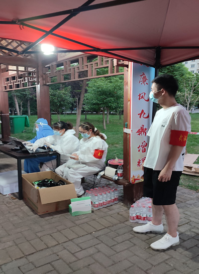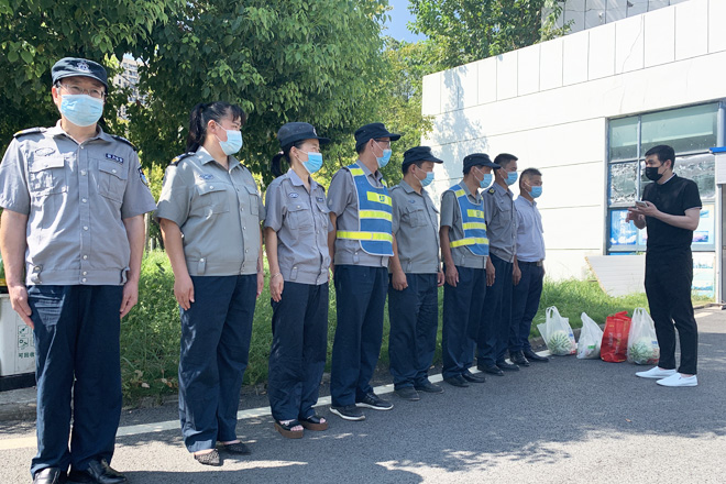 众志成城,同心抗疫。8月4日下午,在学校新冠疫情防控工作领导小组办公室的组织安排下,全校值班人员、安保工作人员、留校学生、公寓管理员等有序前往天兴花园小区核酸检测点完成核酸检测。副校长黄智凌代表学校慰问一线安保工作队员,为他们送去防暑抗疫物资,要求安保队员恪尽职守,进一步加强校园巡逻和管控,确保校园安全有序。8月3日,武汉市启动全市全员核酸检测,学校广大师生一方面积极响应号召,坚持非必要不外出,有序参与核酸检测。另一方面,广大师生党员积极响应学校党委号召下沉社区,参与到核酸检测志愿服务中去,让党旗在疫情防控一线高高飘扬。