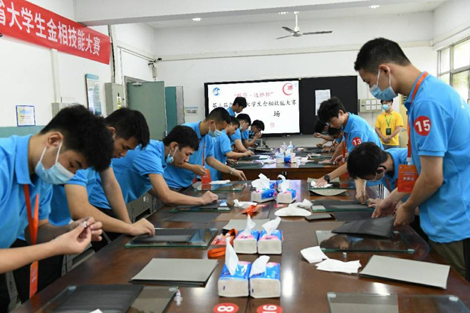 此次大赛由湖北省金属学会和武汉理工大学联合主办,29所湖北省内高校代表队参与大赛,参赛师生人数近300人,是历届赛事中规模最大的一次。该比赛是面向湖北省高校材料类专业大学生的一项科技竞赛活动,每年举办一届。参赛选手需在30分钟内对指定金属样品的指定端面完成磨制、抛光、浸蚀等工序,最终制备出清洁、平整、在金相显微镜下可以清晰观察到显微组织的样品。评委从金相图像质量、观察面清洁程度、观察面平整度三方面,并结合比赛过程中的操作习惯,对选手的参赛表现进行评分。我校机械与自动化学院学生在指导老师宋涛、吕文兵的带领下发挥出色,展现了良好的专业素养,得到了评委的高度肯定。