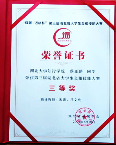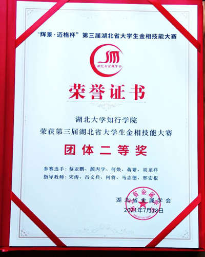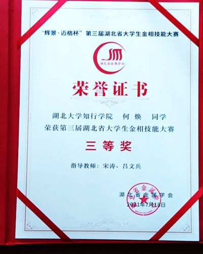 近日,第三届湖北省大学生金相技能大赛在武汉理工大学圆满举行。我校机械与自动化学院学生团队在与包括武汉大学、华中科技大学、湖北大学等重点高校学生的比拼中喜获佳绩,荣获团体二等奖。颜丙学同学获得个人一等奖,胡龙祥、蒋繁、蔡亚鹏、何焕等同学获得个人三等奖。
