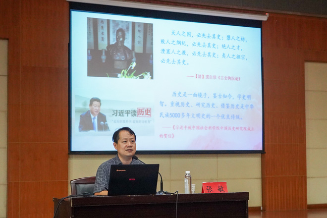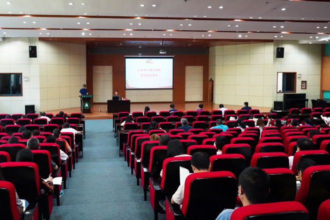 9月29日下午,应学校邀请,湖北大学党史学习教育宣讲团专家、历史文化学院副教授张敏莅临学校,为学校党员干部宣讲习近平总书记在庆祝中国共产党成立100周年大会上的重要讲话精神。校党委书记彭德忠主持报告会,校领导、全体教职工党员参加学习。
