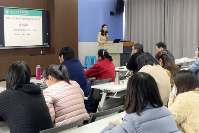 会上,教务处督导办公室负责人汪小曼对期中教学检查情况进行了总结,通报了教师教案检查、教师作业布置及批改检查、试卷及课程档案检查、2021届毕业论文专项检查情况等方面的基本情况,并就进一步加强教学管理和教风考风建设进行了布置安排。