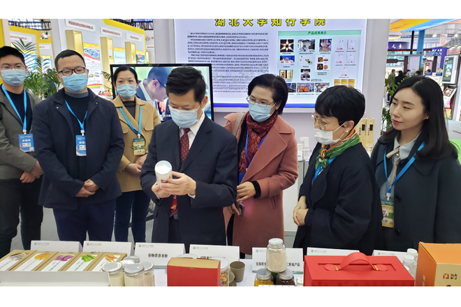 11月27日,由湖北省粮食局主办,湖北省粮食行业协会承办的2021第二十二届荆楚大地好粮油展示交易会在武汉国际博览中心开幕,我校共16项科技成果亮相大会,副校长钟春敏和粮食与食品工程学院、相关职能部门负责人,承担湖北省粮食局科技成果转化项目的老师参加展会。期间,湖北省粮食局党组书记、局长胡新明,省粮食局办公室主任、一级调研员林玉华,省粮食行业协会秘书长陈三才等领导和多家企业专家参观了我校展区,对我校本次参展的科技创新成果给予了高度肯定。