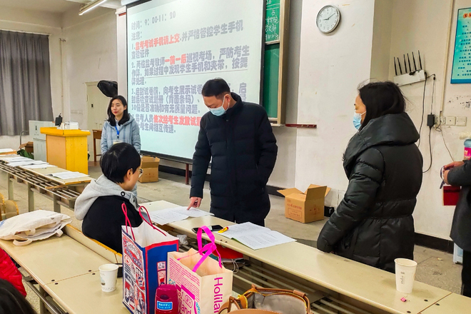 考试期间,上级巡视员在相关部门负责人的陪同下,详细检查了考试各环节,并对我校的考试准备、组织安排、保障措施等工作给予了高度评价。 学校各职能部门互相配合,各司其职,全程跟进,始终做到思想上重视、制度上保证、环节上落细,有效保障了本次四六级考试工作的顺利进行。