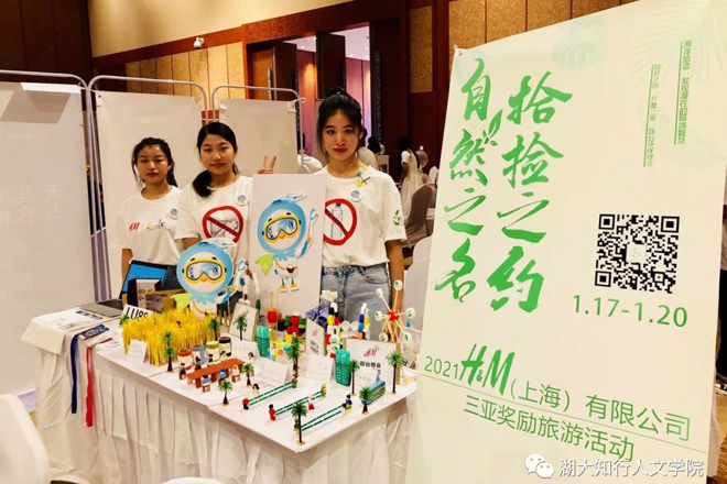 本次比赛由中国国际贸易促进委员会、中国国际贸易促进委员会商业行业委员会、中国国际贸易促进委员会海南省委员会、三亚市人民政府、中国国际商会商业行业商会、商业国际交流合作培训中心、中国会展经济研究会联合主办。竞赛要求参赛团队围绕三亚市的旅游资源和特点,选择一个合适的企业量身定制一款四天三夜的会奖旅游活动方案。比赛共吸引24个省、自治区和直辖市的近百所院校参赛。我校人文学院旅游管理专业的陈珊琦、周嘉悦、袁玉琴、潘玉四位同学组成的“奥利给队”前期准备充分,选择了上海H&M商业有限公司作为参赛公司,坚持“绿水青山就是金山银山”设计理念,以“拾捡”为行动,贯穿“无废”元素,打造以“自然之名,拾捡之约”为主题的四天三夜会奖旅游,在众多参赛项目中脱颖而出。比赛中,知行学子的环保视频介绍、特色服装配饰以及大方自信的讲解顺利通过复赛,在最后决赛环节,参赛团队通过策划方案现场展示及陈述、临场问题答辩两个环节的精彩表现,成功摘得该赛事商务会奖旅游策划竞赛一等奖,在展洽的现场比拼中,知行学子也凭借扎实的专业基本功拿下展洽会一等奖。