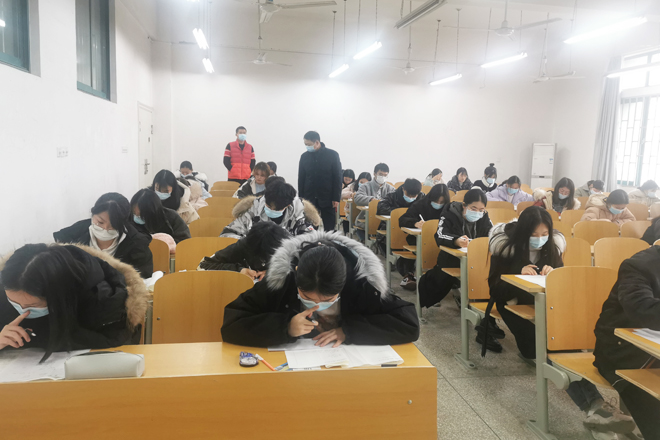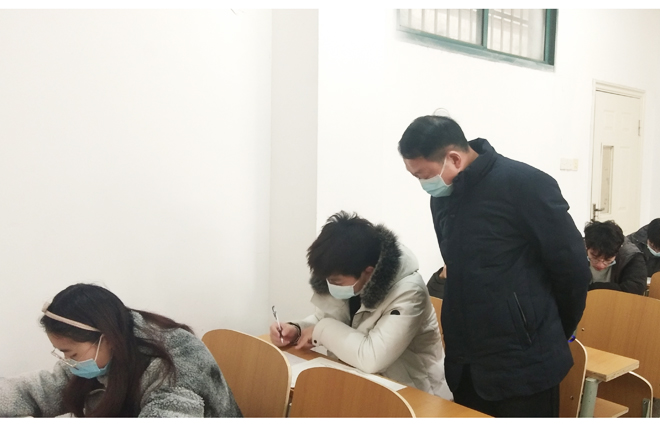 根据学校教学工作安排,12月26日—31日,学校2020—2021学年第一学期期末考试圆满举行。考试过程中,各监考教师恪尽职守,认真负责,操作规范,考试运行顺利,考场秩序井然,考风考纪良好。期间,校长卜诗桢等校领导前往考场慰问考务人员,了解考务准备情况,督促做好考试期间的后勤保障工作,确保考试顺利进行。