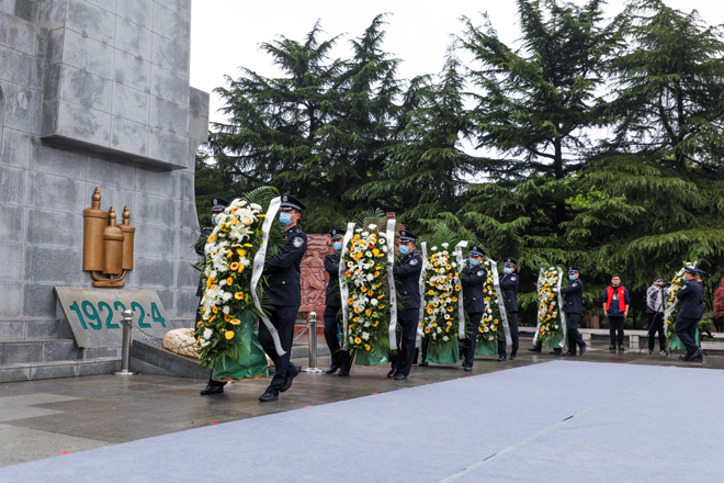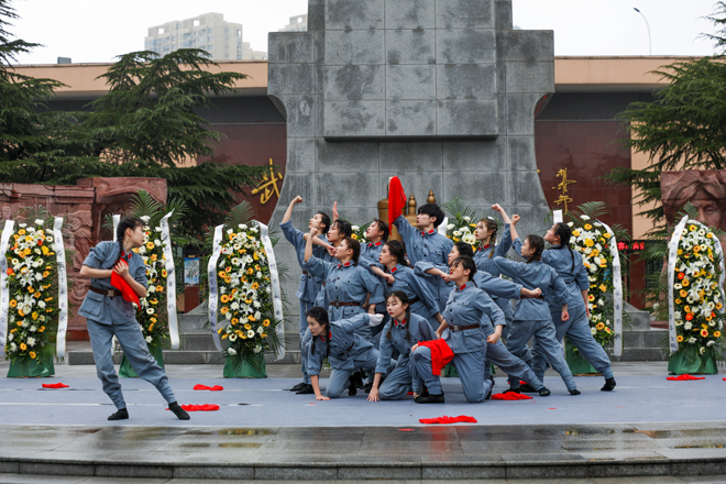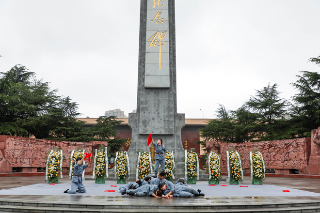 立正、敬礼、默哀、宣誓……纪念馆中央广场,二七烈士纪念碑巍然挺立,公安干警代表向二七烈士纪念碑敬献花篮,全体人员向先烈默哀致敬,沉痛悼念为民族独立和人民解放事业流血牺牲的革命先烈。启动仪式上,我校艺术团学生表演了精心编排的红色舞剧《忠魂》,该舞剧表达了对革命先烈的崇高敬意和深切缅怀,展现了青年大学生的爱党爱国之情和奉献祖国、奉献人民的远大理想抱负,极富感染力和教育意义。启动仪式后,现场人员集中参观了二七纪念馆和《二七革命斗争史图片展》、《红色记忆——中共中央在武汉》主题展。后期,学校还将结合活动主办方安排,组织师生开展一系列党史学习教育和革命传统教育活动,厚植青年大学生爱党、爱国、爱社会主义的情感,让红色基因、革命薪火代代传承。