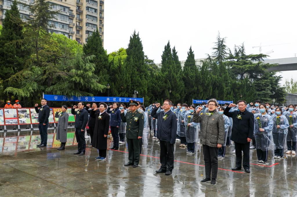 “发扬红色传统,勇担时代使命……”为庆祝中国共产党成立100周年,缅怀革命先烈,弘扬爱国主义精神,深化青年党史学习教育,在清明节即将来临之际,4月1日上午,校团委积极组织师生代表参加武汉市“追寻百年伟迹 学思践悟立信”主题教育活动暨江岸地区第三十五次“中华英烈凭吊周”启动仪式,并向二七烈士纪念碑敬献鲜花。