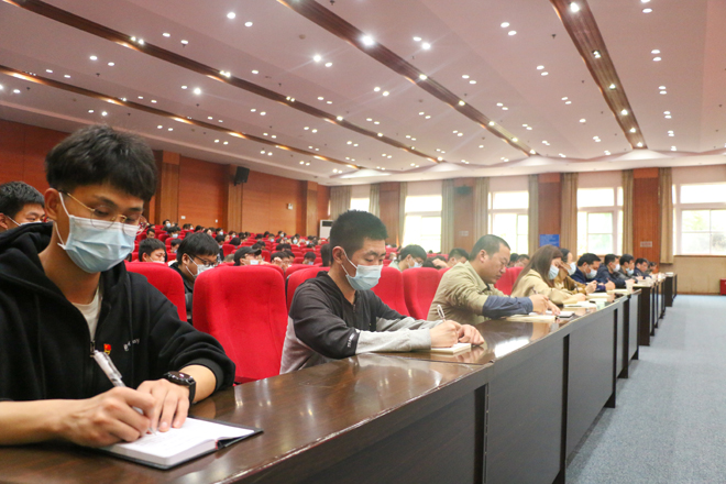 4月21日下午,学校举行党史学习教育专题读书班暨党委理论学习中心组(扩大)集体学习。校党委书记彭德忠主持学习,校长卜诗桢为全校师生党员作专题辅导报告。全体教职工党员和学生党员代表参加学习。