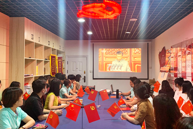 7月1日上午8时,庆祝中国共产党成立100周年大会在北京天安门广场隆重举行,中共中央总书记、国家主席、中央军委主席习近平发表重要讲话。湖北大学知行学院师生高度关注,学校党委理论学习中心组成员、各党总支、直属党支部党员师生通过集中观看和个人观看相结合的方式收看收听了大会盛况,认真学习领会习近平总书记在大会上的重要讲话精神,共同回顾党的百年光辉历程,祝福党的百年华诞。
