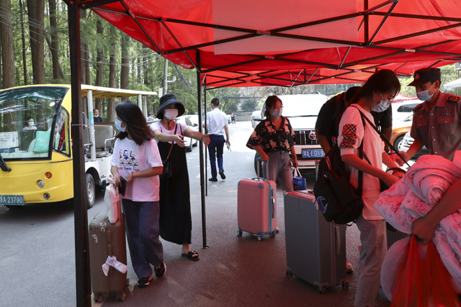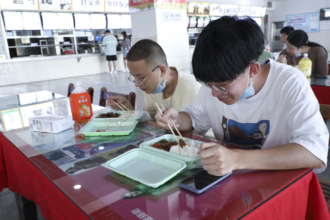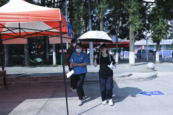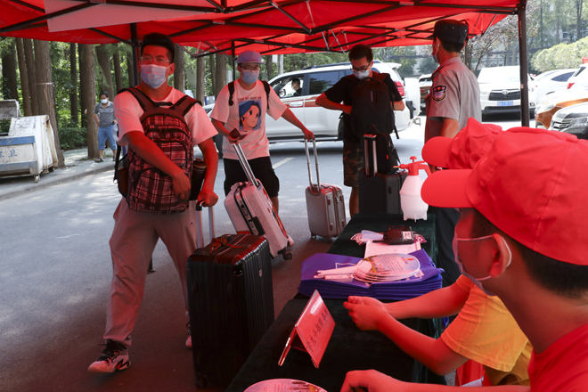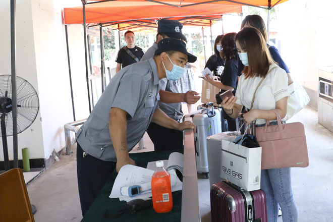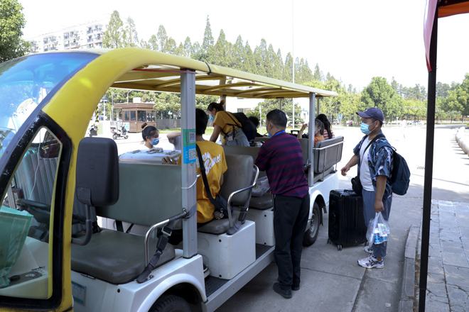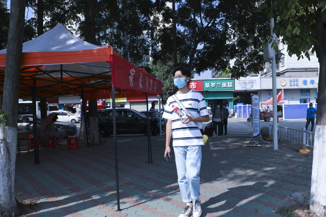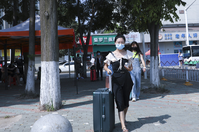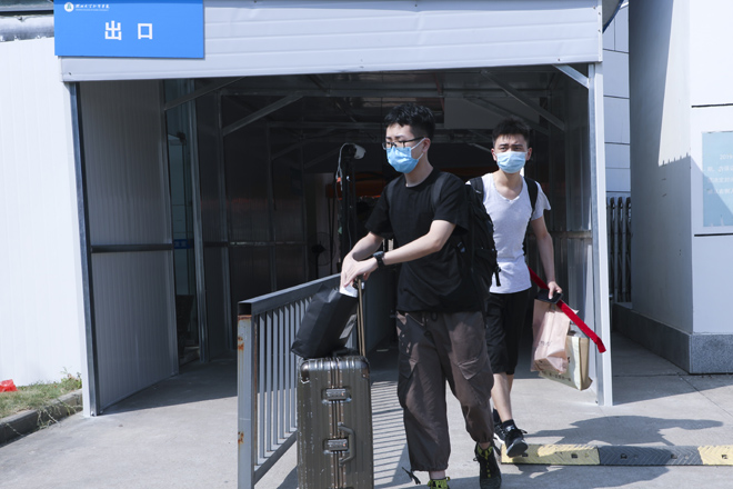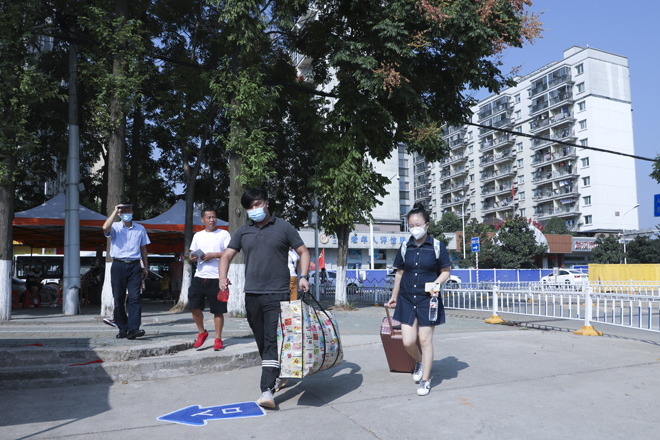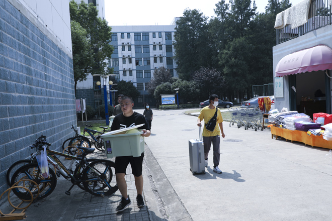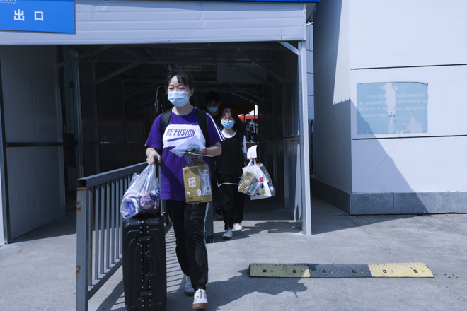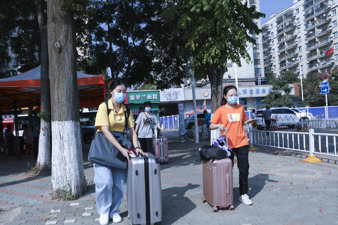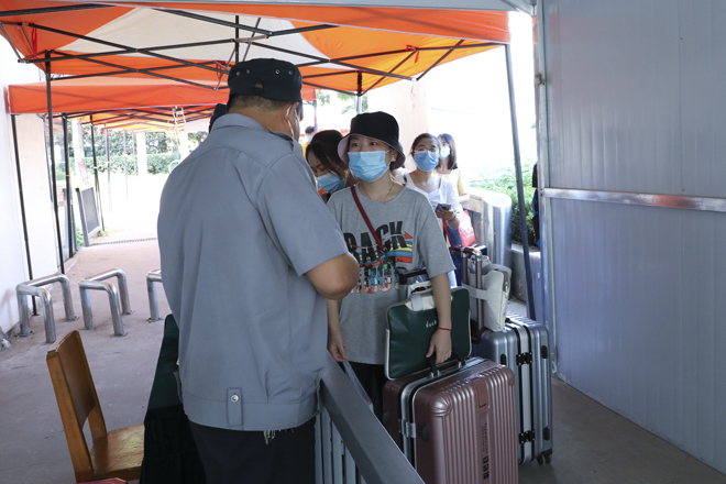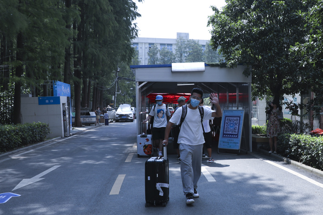“同学,请拿出你的学生证。”学校在1号门、2号门、北苑公寓设置了3个学生返校通道,工作人员仔细对返校学生进行检测行李物品表面消杀、返校学生手部消毒、体温检测、核实身份、查验健康码,各个环节有条不紊的进行,同学们拎着大包小包走进久违的校门。健康打卡,邮寄课本,晾晒衣物、爱心大礼包……这背后是一份深深的责任和关爱。跨进校门的学生感叹颇多,倍感亲切。