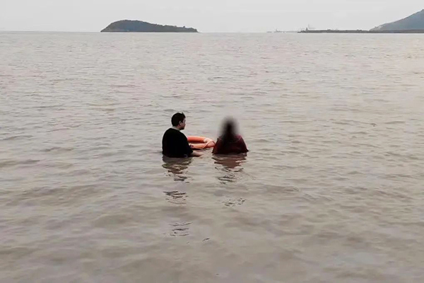 “水已经漫到她小腿那个地方了,当时我们就以为她是不是在玩水,后来看到她越走越深,也没有把裤腿卷起来,而是一直往深水处走,水漫过她腰间的时候,我们就在想不会是要寻短见,情况不对劲儿。”金哲铭谈到救起落水女子时表示,当时正值涨潮,且下面铺了鹅卵石,经过海水长期冲刷表面较为圆滑,情况紧急,自己也没有多想,只是出于本能就跳下去救人了。金哲铭靠近女子后,没有冒然施救,而是“智取”,一边跟女子攀谈套近乎,一边指挥岸上同学送救生圈。了解到女子因家庭矛盾产生轻生想法,他进一步安慰开导女子,在海水即将淹过脖子的时候将其劝住,轻生女子情绪慢慢稳定,最后在当地保安的协助下将女子成功救上岸。