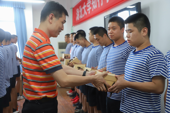 会上,保卫处处长熊万斌宣读我校2019年新入伍学生名单。副校长黄智凌代表学校向入伍的学生赠送纪念品,各学院负责人为入伍学生佩戴红花。
