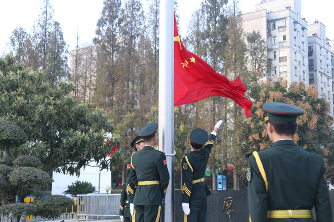10月1日早上7时,在举国欢庆的时刻,学校在知行广场前隆重举行庆祝新中国成立70周年升国旗仪式,全体校领导、中层干部、教师代表和学生代表参加升旗仪式。国庆当天,知行师生还分别在图书馆一楼大厅和学术报告厅弘德厅集中观看新中国成立70周年庆祝大会和阅兵式。10月1日当晚,校党委书记彭德忠带领各单位值班人员来到粮食与食品工程学院,与同学们一起共同观看了庆祝新中国成立70周年国庆晚会。10月2日—4日值班期间,彭德忠书记深入学生宿舍走访慰问留校学生,与师生们畅谈观看新中国成立70周年庆祝大会和联欢晚会的感想体会,表达对祖国的热爱和真挚的祝福。