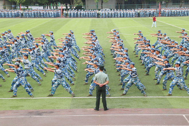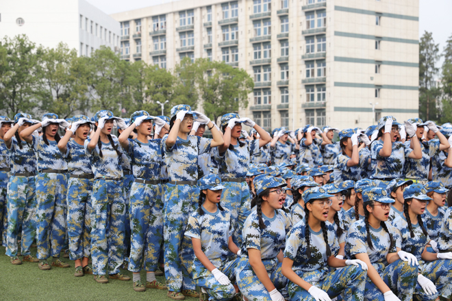 9月26日,在学校2019级新生军训成果汇报表演中,2800余名新生以自己独有的方式表达着对伟大祖国的祝福,同学们在花样方阵表演中,不断变幻“70”“1949”“2019”“祖国万岁”等字样。表演最后,全场师生齐声歌唱“我和我的祖国”,以独有的方式向新中国成立70周年献礼。