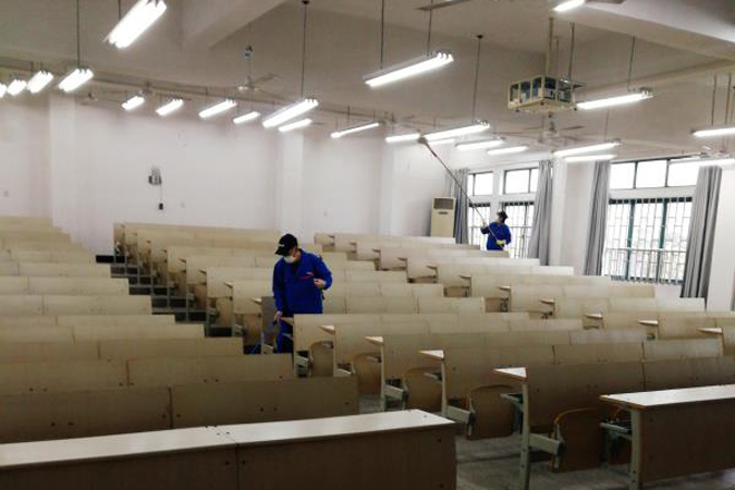 随着疫情防控形势持续向好,学校复工复学各项准备工作正紧张有序进行。连日来,学校后勤保障处坚持以全覆盖、无死角、不遗漏为原则,组织工作人员集中对学生公寓、教学楼、图书馆、办公楼和校园公共区域进行全面消杀和环境清洁,全力营造一个安全、卫生、干净的校园环境,为开学复课做好充分准备。