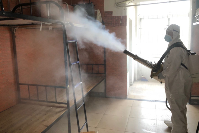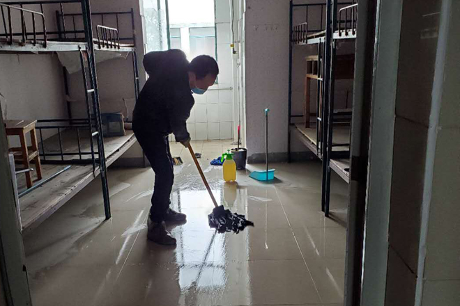 在校园环境整体清洁消杀中,学生公寓是重点。3月25日,学校学生公寓作为江岸区疫情防控康复驿站征用结束后,后勤保障处联合江岸区疾控中心重点对学生宿舍和校园公共区域进行了两次集中消杀,消杀过程中,工作人员持背负式电动喷雾机,对每间宿舍和公寓楼栋门口、过道、楼梯、下水道及校园整体环境进行了全面细致的消杀。集中消杀后,学校同时聘请专业机构对每间宿舍的空调、洗漱池、卫生间等地方进行重点消毒清洁,并组织工作人员对办公楼、图书馆和教学楼的每间教室、实验室进行了全面消杀清洁,确保师生学习工作生活环境的安全洁净。