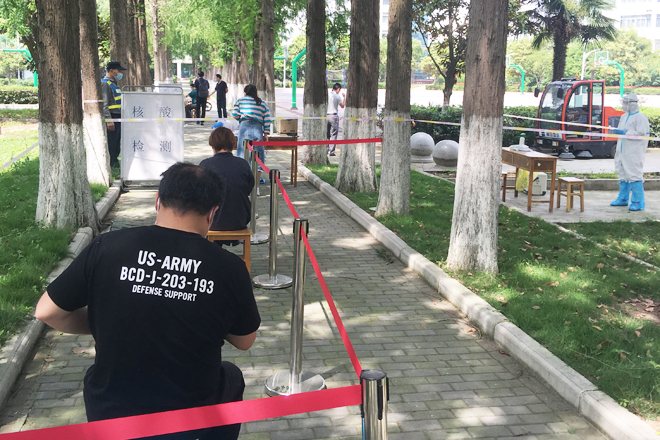 检测期间,广大教职工陆续来到校园,大家自觉戴好口罩,按照要求保持间距,分别在学校知远楼和篮球场林荫小道前有序接受检测。参加检测的教职工按照编号有序登记,随后领取编配个人专属检测条码的试剂盒进行咽拭子采样和血清检测。整个采样过程井然有序,检测完的教职工离开校园后,工作人员再次对校园进行全面消杀,确保校园安全。相关部门负责人介绍,对全体教职工进行健康检测是学校推进复工复学准备工作的一项重要内容,目的就是要织密筑牢校园安全防护网,确保师生生命健康安全。