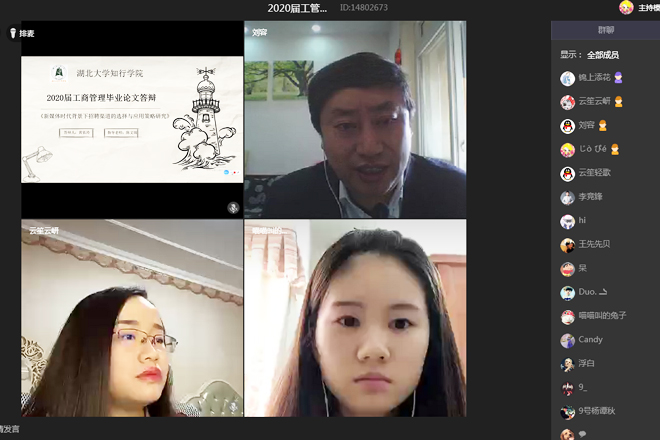 编者:受新冠肺炎疫情影响,继线上网课后,线上答辩也如期而至,这也给毕业生们吃了“定心丸”。 应届毕业生的规划前期被疫情按下“暂停键”,现在也得以继续进行,基本上不会被打乱。而且,他们还将拥有人生第一场“云答辩”,这样的经历值得纪念。即日起,我们将陆续关注报道学校各学院“云答辩”情况,共同见证学校2020届毕业生大学期间的最后精彩一课。