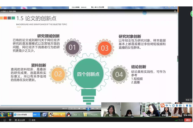 为确保毕业生论文线上答辩质量,经济与管理学院制定了详细的工作流程和技术解决方案,并对线上答辩过程进行全程录屏,成立线上答辩督导工作组。答辩共设置有4个分场,21个答辩组,共357名同学参加答辩,每个答辩组设有答辩组长1名和答辩老师2名。为了完成这样一场特别的毕业答辩,上好大学最后一课,无论是学生,还是老师,大家都精心准备、全力以赴。参加答辩的学生就毕业论文(设计)的选题的目的意义、研究内容、研究方案、研究成果等提前进行陈述报告的录制,答辩时再打开视频通话并播放陈述录制视频。老师们则提前了解演练答辩流程,并制定相关网络不畅的预案,确保不因技术问题而影响学生的答辩效果。“这是一种全新的模式,老师们也要从零学习,特别是对于网络答辩技术的掌握上更是如此。”陈子清老师坦言,为了确保同学们这次线上答辩的顺利进行,自己着实下了不少功夫,还请家人帮忙指导反复演练。在选题方面,许多同学在老师们的鼓励指导下更是结合实习实践经历进行论文的撰写。