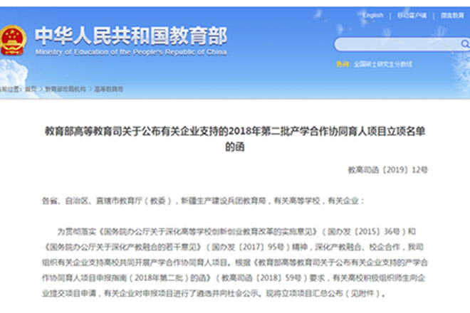 近日,教育部高等教育司发布《关于公布有关企业支持的2018年第二批产学合作协同育人项目立项名单的函》(教高司函〔2019〕12号),我校经济与管理学院3个项目获批立项。