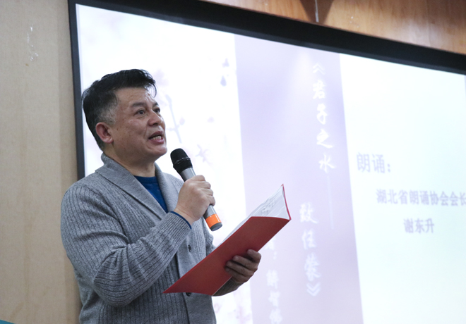 为分享朗诵艺术的魅力,感受文学的声音存在,营造浓郁的书香校园氛围。3月31日下午,我校人文学院联合武汉市汉梦清音读书会共同举办了“春天的遇见——任蒙散文朗诵会”。湖北省作协副主席高晓晖、湖北省朗协会长谢东升、著名作家任蒙、我校副院长王文凯教授等嘉宾出席活动,广大朗诵爱好者、任蒙老师作品喜爱者和我校人文学院师生200余人参加活动。