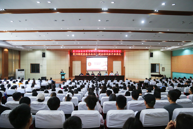 4月17日下午,学校第30期党校入党积极分子培训班开班典礼在学术报告厅弘德厅举行。校党委书记、党校校长彭德忠出席开班典礼并讲话。校党委副书记高志宏,副校长陈刚、王文凯,校长助理陈惠,校党委委员刘张虎,各学院党总支书记,学生党支部书记,相关职能部门负责人和近400名党校学员参加开班典礼。学校副校长黄智凌主持开班典礼。