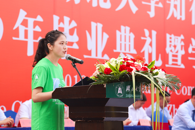 敬爱的老师们,我们即将启航,感谢几年来您们的辛勤付出和谆谆教诲,带着您们美好的祝愿与期望,我们即将开启一段新的旅程;亲爱的同学们,我们即将从知行出发,无论是继续深造,还是走上各自的工作岗位,仍然要继续学习,积极进取,我们要做自己人生的“掌舵者”,更要做知行文化和校园精神的“继承者”和“践行者”。希望在未来的日子里,不管你是何种身份何种角色,都能够在人生舞台上,慷慨激昂,精彩陈词,书写自己的华丽篇章,青春不毕业,我们不散场!谢谢大家!