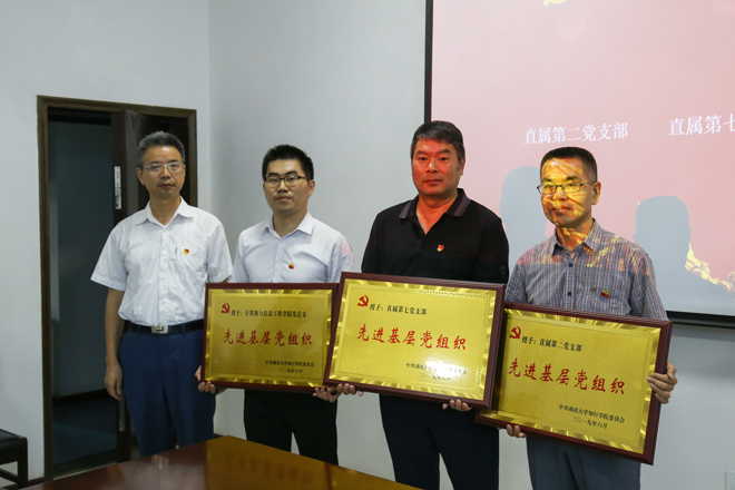 会上,校党委副书记高志宏宣读表彰决定。直属第二党支部、直属第七党支部、计算机与信息工程学院党总支荣获“先进基层党组织”荣誉称号,刘德康等28人荣获“优秀共产党员”荣誉称号,熊倩等9人荣获“优秀党务工作者”荣誉称号;人文学院党总支、艺术与设计学院学生党支部荣获“湖北大学先进基层党组织”荣誉称号,汤姣云荣获“湖北大学优秀党务工作者”荣誉称号,冯斌等10人荣获“湖北大学优秀共产党员”荣誉称号。校领导分别为获奖集体和个人颁奖。