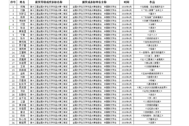 全国大学生文学作品大赛由中国散文学会、湖北人民出版社、《小作家选刊》、《新课程》等机构联合主办,该项赛事是继“新概念作文大赛”后,国内又一面向全国大学生的国家级文学品牌赛事,其以繁荣校园文学创作,促进青春文学事业的发展,发掘、扶持、培养文学新人为目标,具有较高的含金量与公正性。我院人文系高度重视此次比赛的准备与参与,通过比赛前期的广泛宣传有效的激发了学生的写作热情,并通过积极组织系部专业教师开展参赛指导,增强了同学们的参赛信心和技能。