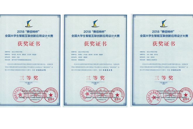 近日,2018年“赛佰特杯”全国大学生智能互联创新应用设计大赛全国总决赛落下帷幕,我院计算机与信息工程系3个进入总决赛的参赛项目全部获得全国三等奖的好成绩。
