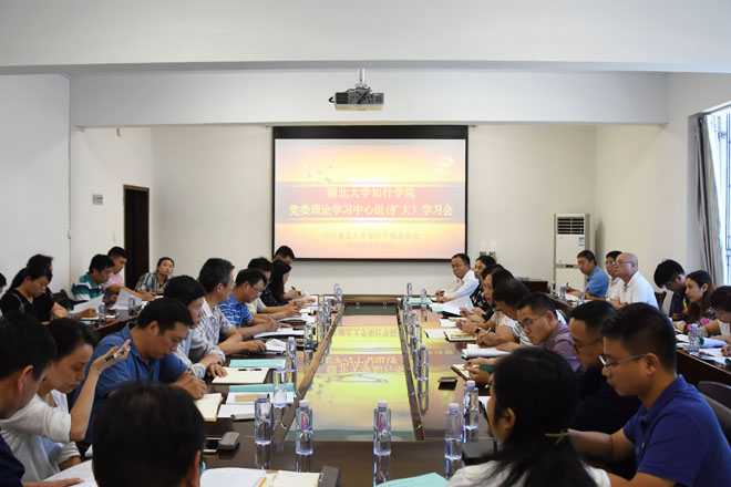 9月29日下午,院党委理论学习中心组在知言楼三楼会议室召开扩大学习会,专题学习全国宣传思想工作会议精神、全国教育大会精神和新修订的《中国共产党纪律处分条例》。学院党委书记彭德忠主持学习。党委理论学习中心组成员、各党总支、直属党支部书记和各单位主要负责人参加学习。