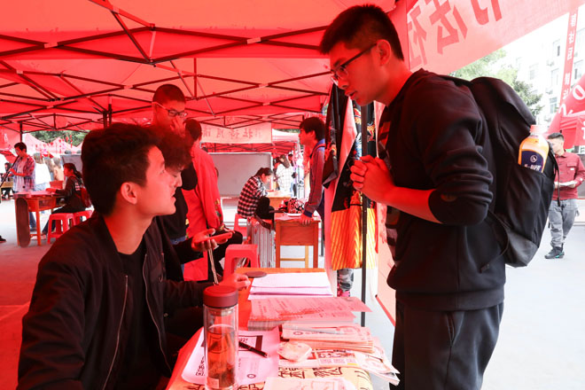 10月16日—18日,学院坤生园旁篮球场人流如梭,气氛热烈,院团委、院社团联合会举办的一年一度的学生社团集中纳新展示活动如火如荼进行。广大新生参与热情高涨,积极咨询社团情况,认真选择适合自己的社团。学生社团工作人员耐心细致地回答新生们的咨询,并鼓励新生积极参与、勇于尝试。