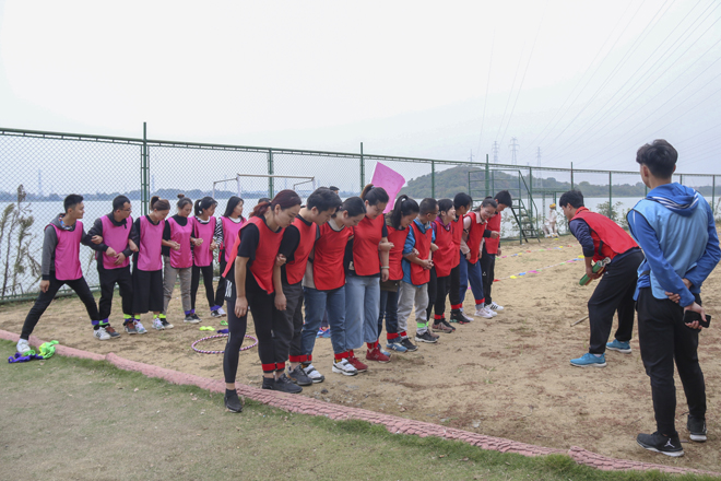 拓展训练始终围绕沟通、信任、协作等方面开展,活动主题鲜明,内容丰富。来自不同系部的辅导员分编到不同的小组进行混合组队,要求各队队员在最短的时间内熟悉队友并同心协力完成各个项目的比赛。活动充分锻炼了辅导员的智力、体力、意志力和团队协作力,大家全心投入,积极参与,学会沟通与协作,促进交流与友情, 在充分展现我院辅导员团队精神面貌的同时,愉悦身心,传递快乐。