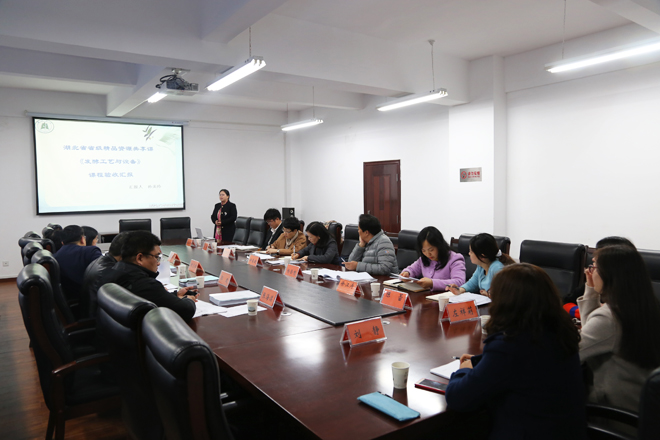 11月15日,武汉大学谢志雄教授,华中师范大学王玉凤教授,湖北大学张海谋教授、杨艳燕教授,湖北工业大学郭建教授一行五人组成的专家评审组莅临我院,对我院粮食与食品工程系副教授孙美玲主持的省级精品资源共享课《发酵工艺与设备》进行评审验收。经专家评审组评定,我院此次申请主持的省级精品资源共享课顺利通过结题验收,为下一步的申报认定打下了坚实基础。学院副院长钟春敏出席会议,相关职能部门、系部负责人和项目组全体成员参加评审会。