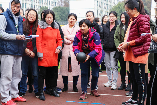 趣味运动会共设置了雷霆战鼓、风雨同舟、齐心协力、陆地龙舟四项趣味集体项目和红心大战、趣味飞镖、地滚球击弹三项个人项目。在各二级工会小组的精心组织下,教职工们精神抖擞,充分发扬顽强拼搏、团结合作的精神,此起彼伏的掌声和欢呼声充满整个运动场。集体项目中,老师们互相鼓励、配合默契,个人项目中,老师们不畏强手、你追我赶,这种奋勇争先、重在参与的氛围感染着运动场上的每一个人,不少学生也纷纷跑来为老师们加油助威,现场热闹非凡,呈现出一派欢乐祥和的景象。
