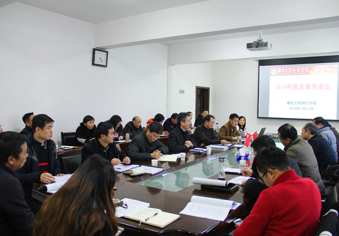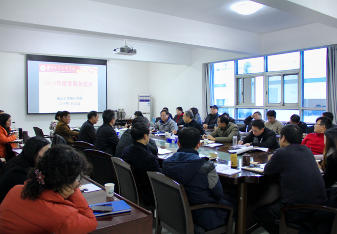 会上,湖北大学发展规划处处长邵士权结合相关专题汇报,就学院的专业设置、双师型队伍建设、实验室建设、产教融合等提出了一系列很好的意见和建议。发展务虚会期间,学院校园信息化建设与管理办公室负责人就智慧校园建设作了专题汇报,基建办公室负责人就2018年校园基建及维修项目作了专题汇报。与会人员还专题研究讨论了学院2018年党政工作要点。