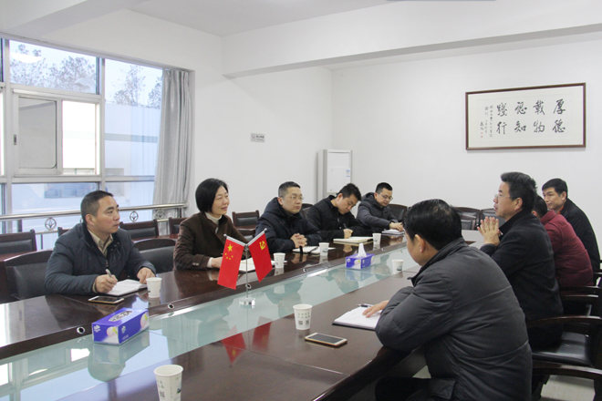 3月6日上午, 武汉市江岸区谌家矶街党工委书记张利、 街办事处主任吴振羽、 街办事处副主任詹雷 、街人武部部长钱文徳、街党建办主任邓英强一行5人来我院调研。学院党委书记彭德忠、院长卜诗桢热情接待了张利、吴振羽一行。副院长黄智凌、党委委员刘张虎及相关职能部门负责人参加调研座谈。